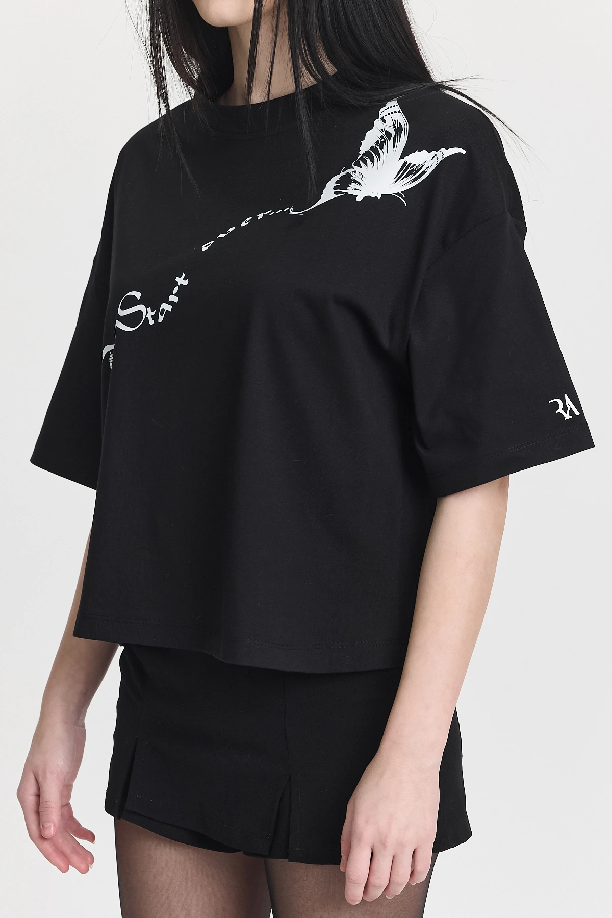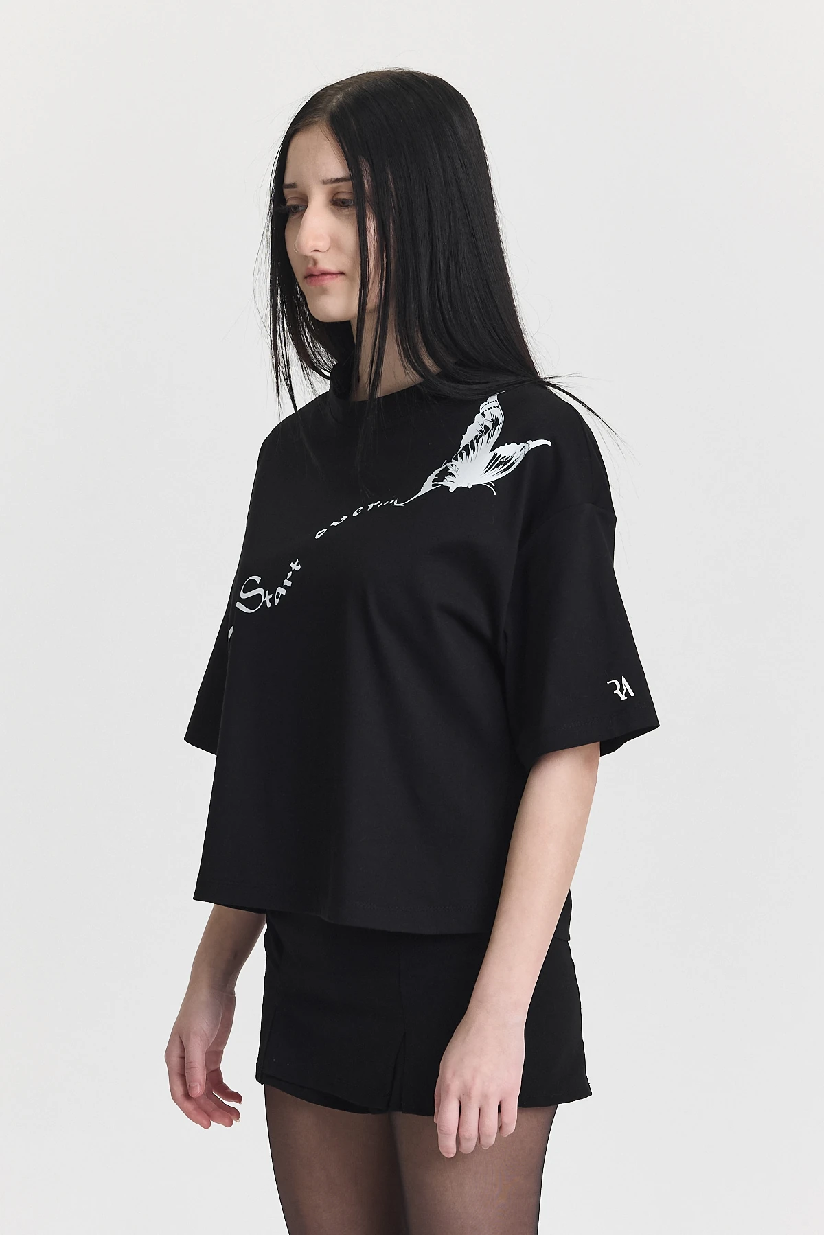 RosAmara Start Over Baskılı Oversize Siyah Tişört, yeniliği ve cesareti temsil eden enerjik tasarımıyla öne çıkıyor. Göğüs kısmındaki "Start Over" baskısı, yeni başlangıçlara ilham verirken, siyahın zamansız şıklığıyla birleşerek güçlü bir tarz sunuyor.